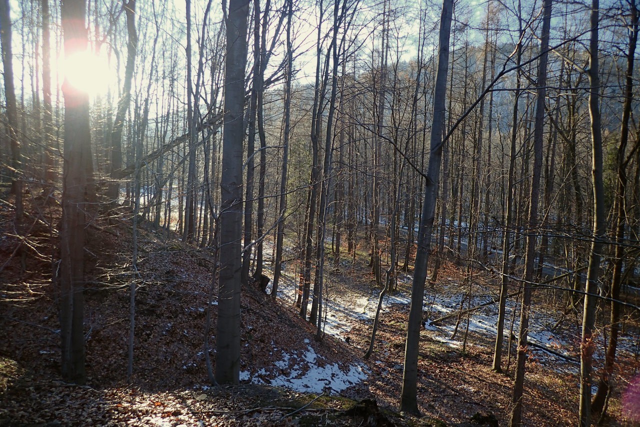 Sebastian z Mikołajem udali się zbadać teren nad skarpą po lewej (orograficznie prawej) stronie doliny. Zlokalizowali “mostek” ze starej rury.