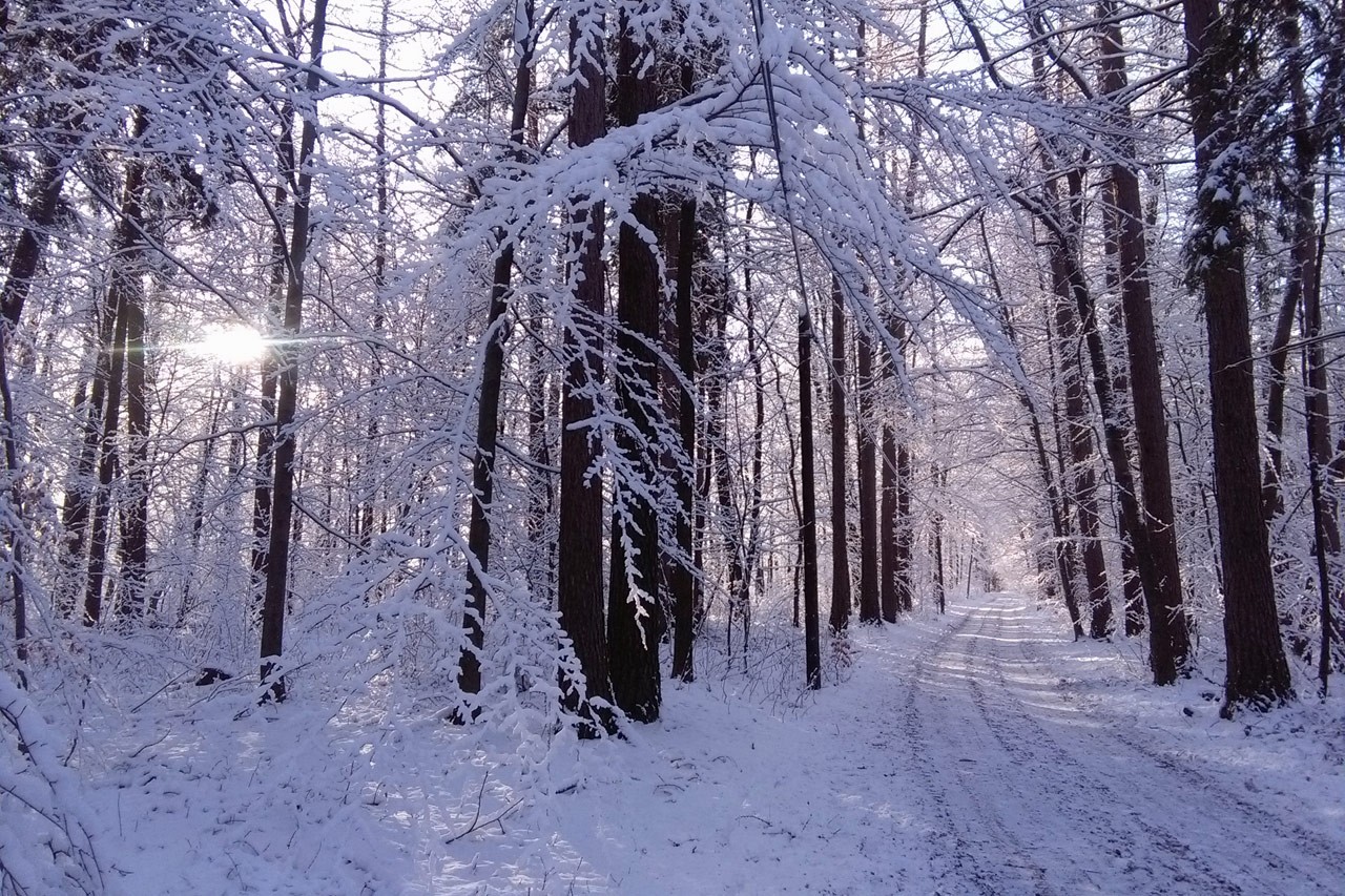 W dole przywitał mnie cudowny zimowy poranek. W górze nieco więcej śniegu. Między odbiciem z niebieskiego szlaku a szczytem: spory, dość świeży wykrot po lewej stronie ścieżki. Przeszedłem się też kawałek w stronę Borowiny.